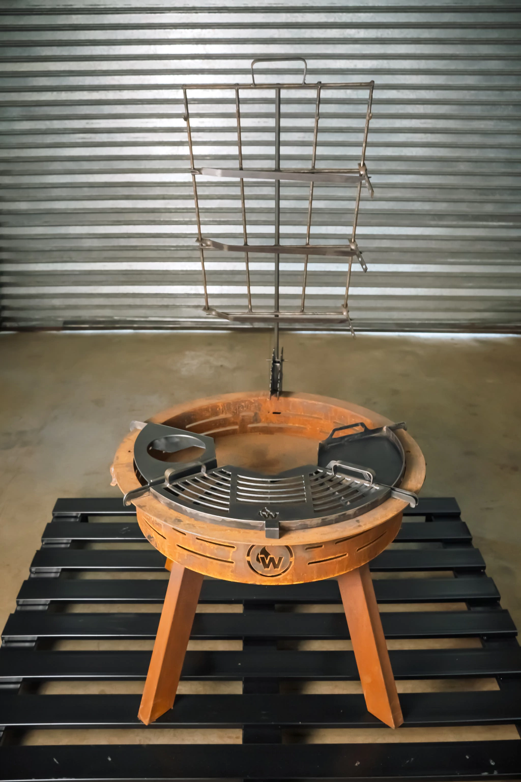A diferencia del fogonero base, la opcion full incluye tabla, brasero, hornalla, disco y provoleteras.